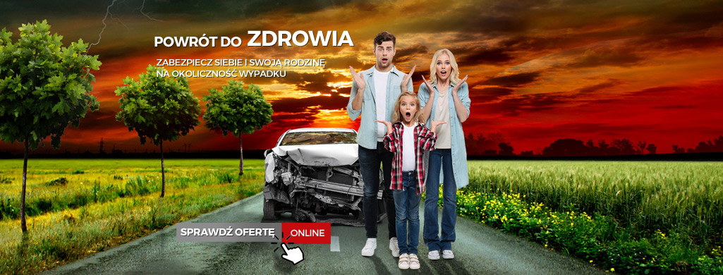Pamiętaj, aby nie tylko dobrze ubezpieczyć samochód ale również Kierowcę i Pasażerów. Możesz to zrobić za 40 złotych rocznie zawierając ubezpieczenie POWRÓT DO ZDROWIA. W przypadku wypadku komunikacyjnego (bez względu na to kto był sprawcą a kto poszkodowanym w wypadku) kierowca oraz pasażerowie pojazdu mają zapewnione bezpłatne świadczenia zdrowotne